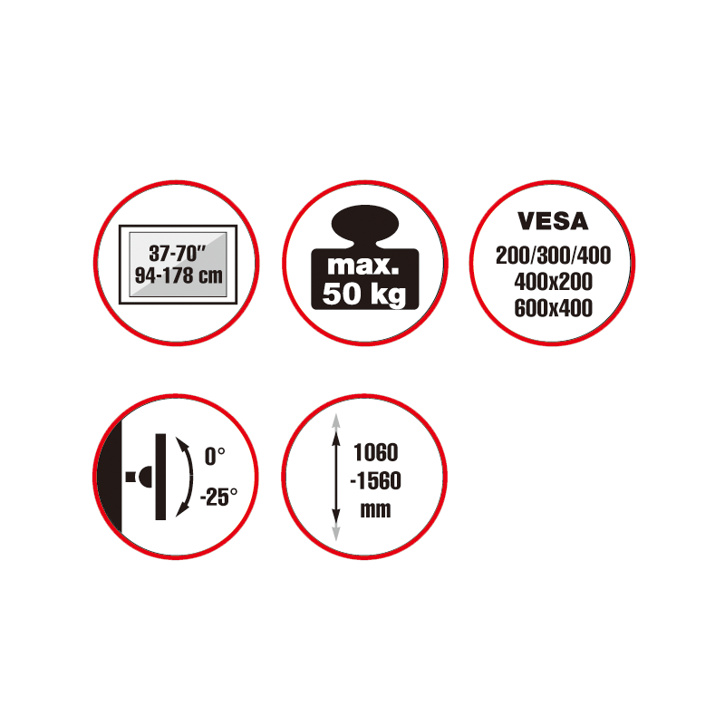 The PALLAS 70-6040T is a full-motion ceiling mount designed to offer the ultimate in versatility and universal compatibility. The ceiling plate is fixed only for flat ceiling application. It allows displays to tilt down and swivel around the pole without tools. Includes VESA plate to accommodate virtually any 37" – 70" flat panel TV or monitor up to 50kg. Features adjustable height for perfect TV positioning and a wire management channel to keep cables concealed and organized.