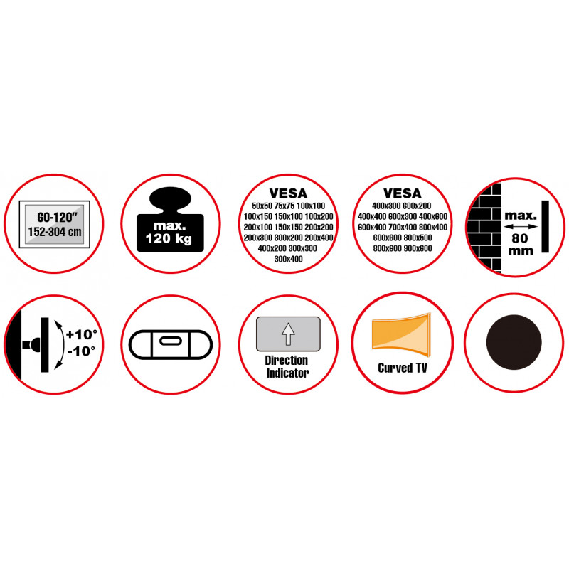 To address the gap in the niche market of heavy-duty large-sized TV wall mounts, the reflecta PLANO Flat 120-9060T affordable TV Wall Mount is a reasonable solution. A stiffener structure levels the weight capacity up to 120kg to firmly hold 60’’~120’’ flat screen TVs. Ample space in the center is perfect for installing the socket outlet and concealing all the messy cables. +10°~-10° toolless tilting mechanism provides the perfect viewing angle. A quick-release spring lock allows TV removal quick and easy and only takes seconds to install.