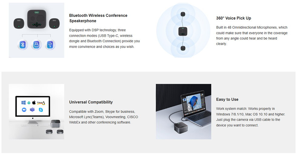 | Application support | Software: Skype, FaceTime, Zoom, Microsoft Teams, Hangouts, OBS and Xsplit, etc. |